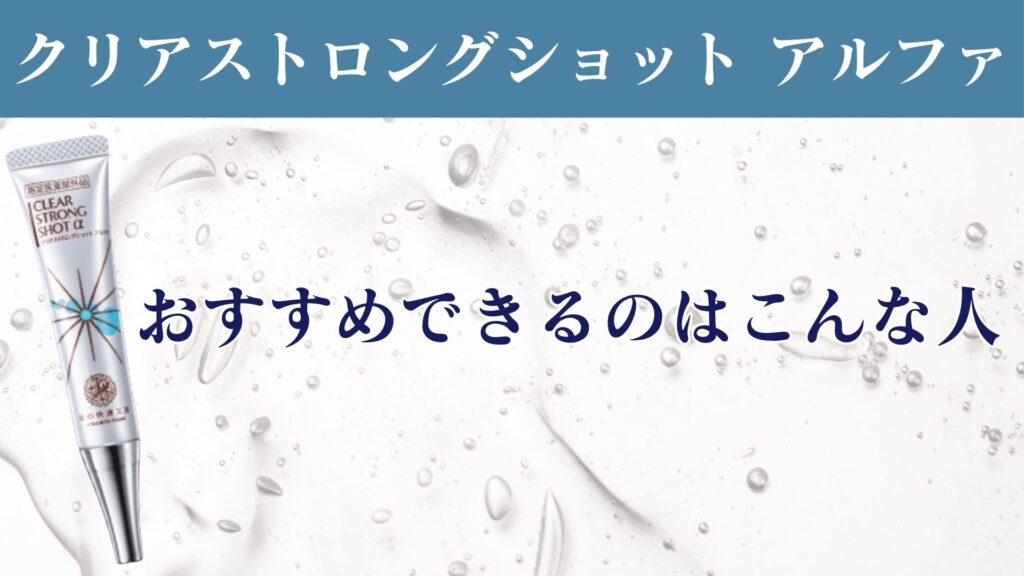クリアストロングショットアルファは、殺菌と抗炎症に強い処方で、ベタつきにくさや使用感の良さが特徴です。
