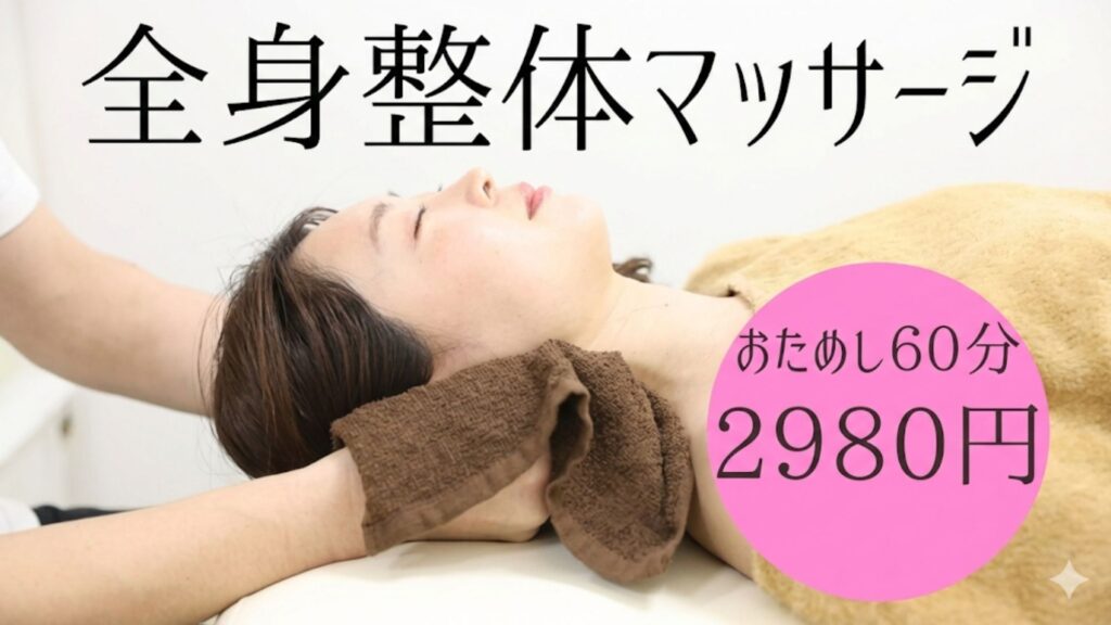 しっかりめの施術が好きな方、コリや疲れをため込みやすい方、仕事帰りに立ち寄れる場所を探している方に向いています。睡眠の質向上や顔の印象ケアにも期待でき、仕事終わりのリセットにもおすすめです。