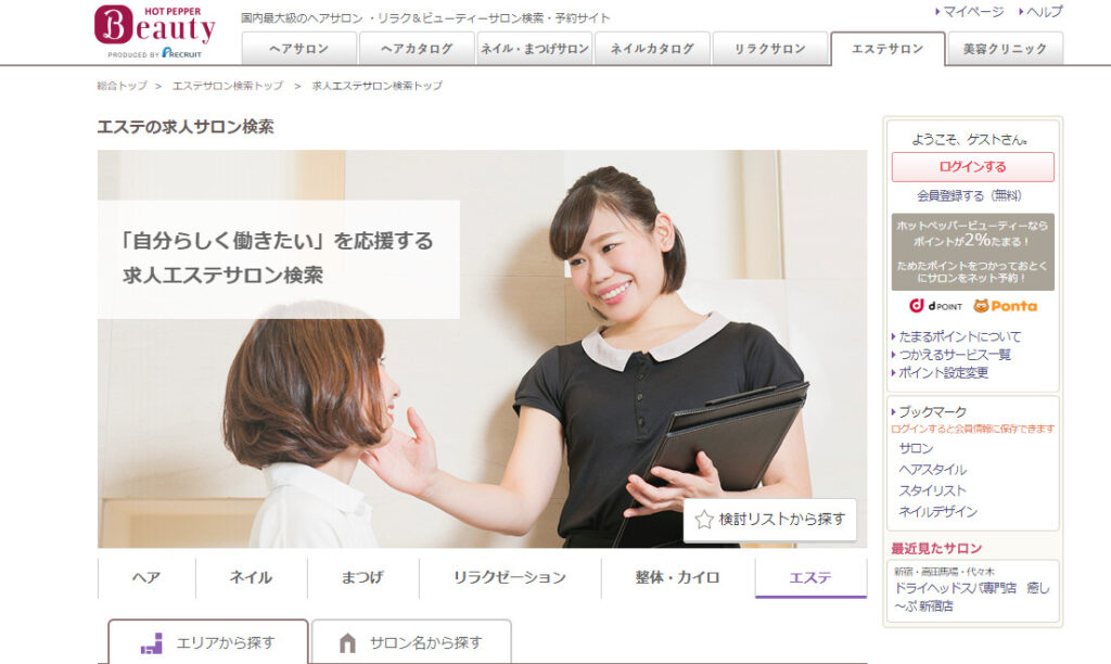 1.HOT PEPPER Beauty:業界最大級の求人数