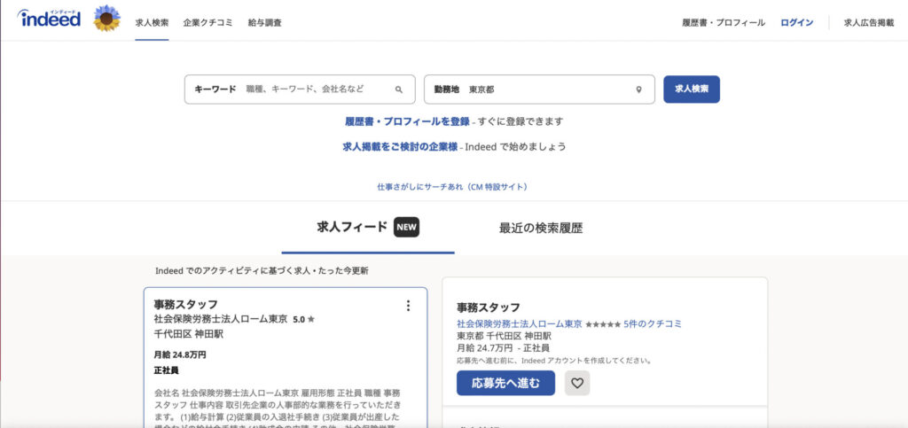Indeedは、世界No.1の求人検索エンジンです。掲載数が非常に多く、ありとあらゆる分野の求人情報を確認できます。