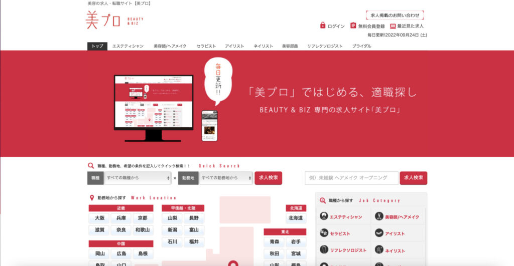 美プロは美容業界専門の求人サイト。美容業界特化型のサイトなので、ヘッドスパやセラピストの求人を探しやすいのが特徴です。