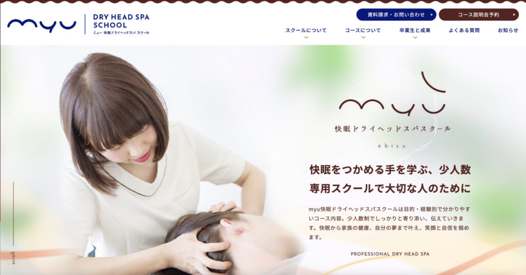 快眠ドライヘッドスパスクールは「myu」が提供する快眠を目的としたドライヘッドスパを学べるスクールです。
