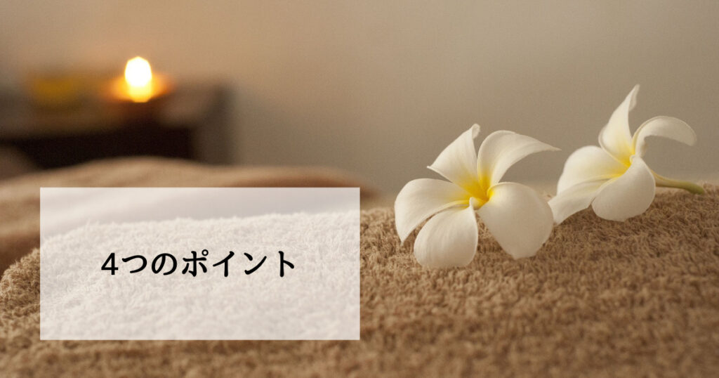 次にオイルマッサージを行う際、更に効果を高めるためのポイントを4つお伝えします。