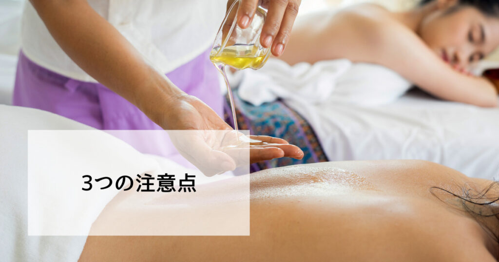 オイルマッサージを行う際には、以下の3点に注意してください。
