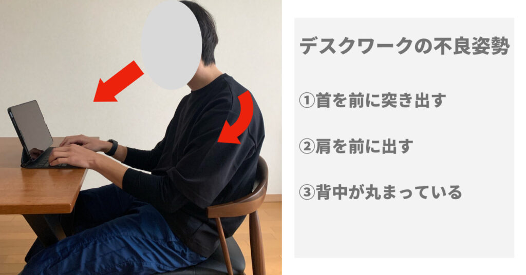 多くの人は無意識に、首を前に突き出し、肩は丸まった姿勢になっています。